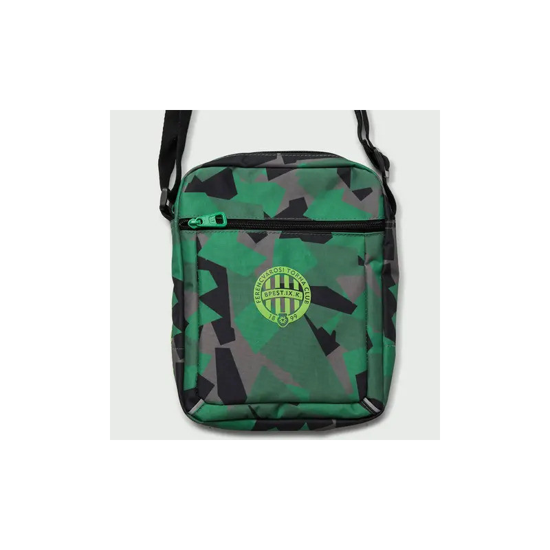 Állítható vállpántos,terepmintás oldaltáska fényvisszavrő részletekkel. Ferencváros címerrel és 1899 felírattal díszítve.