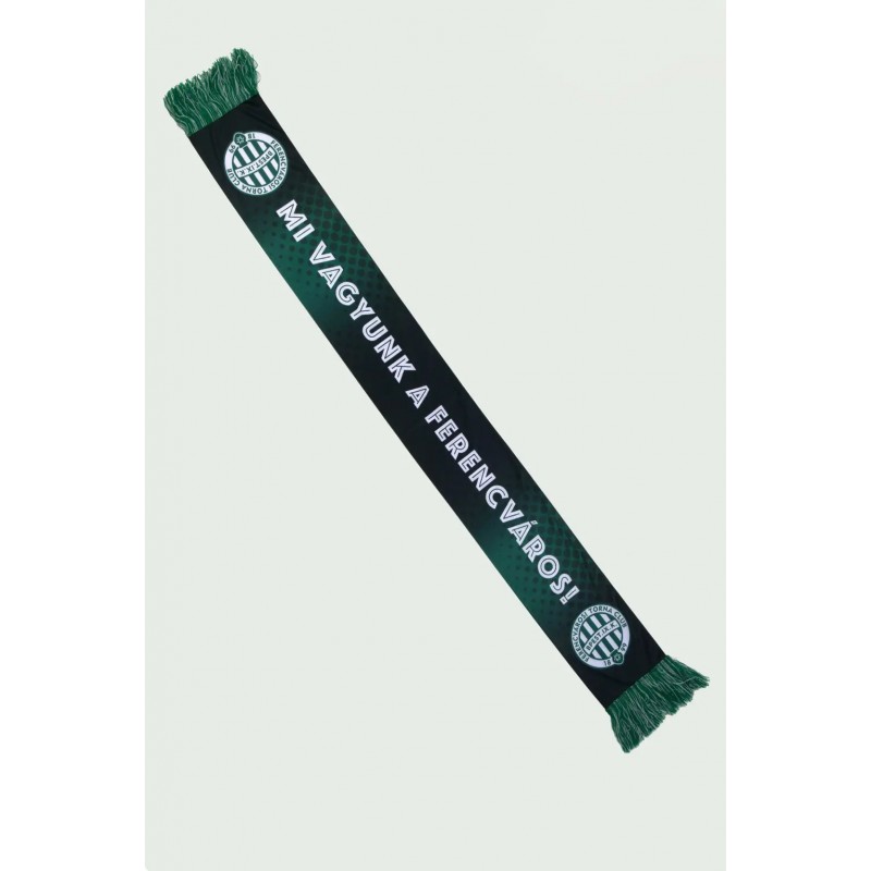 Zöld színátmenetes sál "Mi vagyunk a Ferenváros!" felirattal és két végén FTC címerrel díszítve.