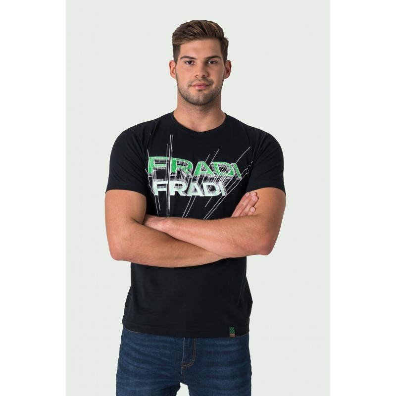 Férfi fekete póló 3D-s mintázatú árnyékolt sötétebb és világosabb zöld FRADI felirattal. Anyaga: 100% pamut