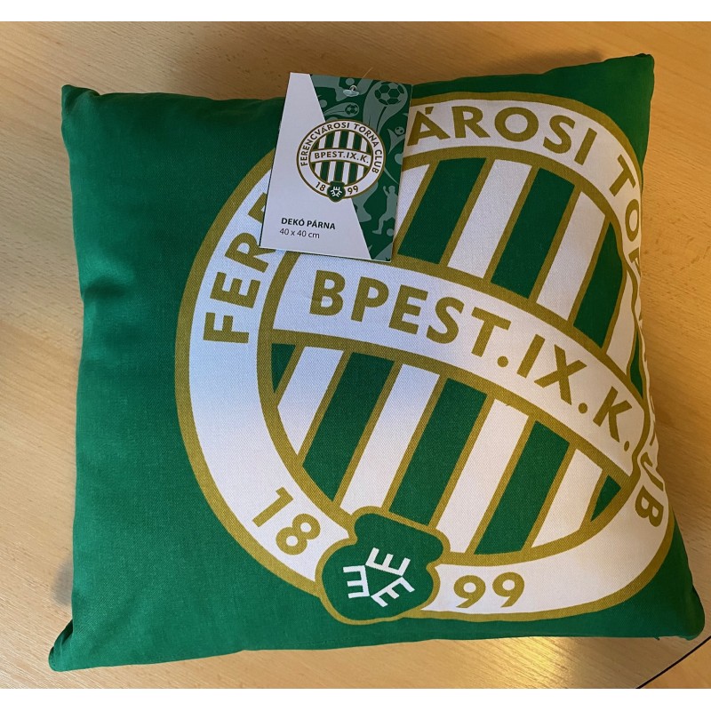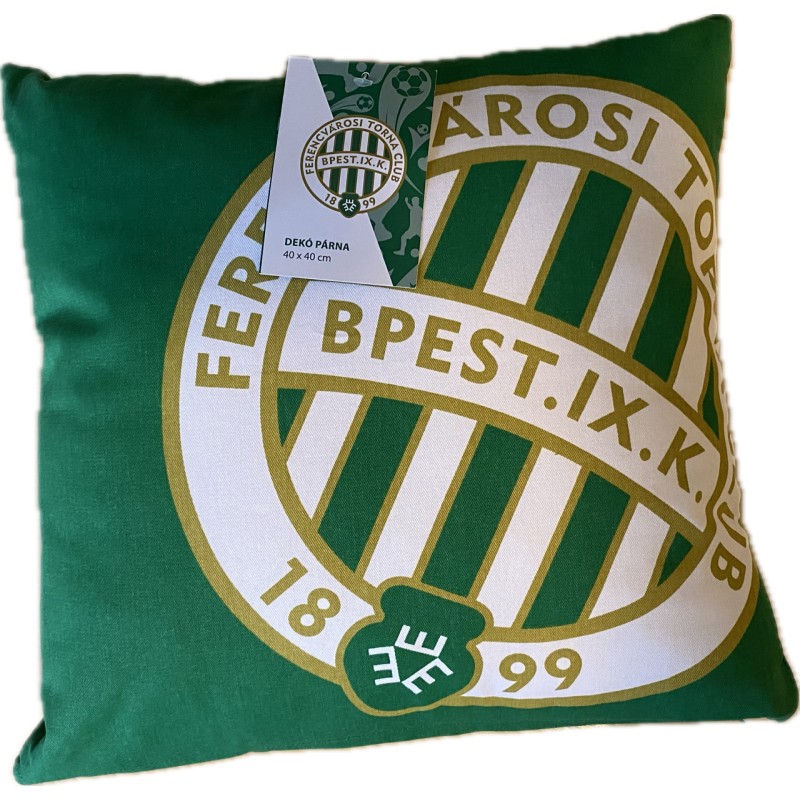 FTC címerrel díszített zöld díszpárna. Méret: 40cm x 40cm Anyag: 100% pamut huzat, 100% poliészter bélés 30 Celsius-fokon mosható.