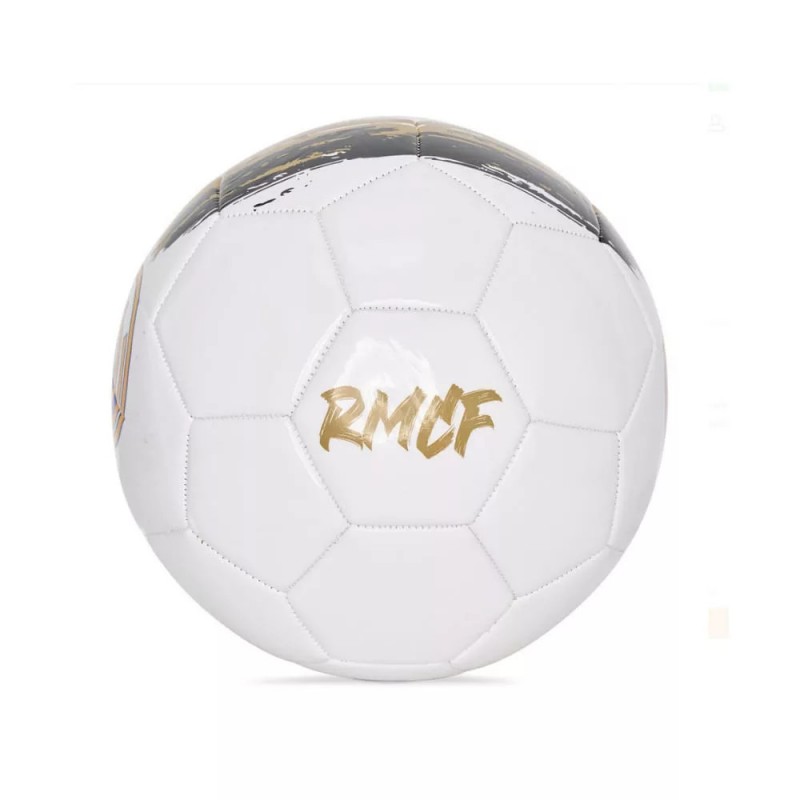 Ez a 5-ös méretű, poliuretánból készült labda a Real Madrid ikonikus arany-fekete-fehér színeivel és címerével a madridisták elengedhetetlen kelléke. Eredeti licenszes termék, közvetlenül Spanyolországból, amely garantálja a tartósságot és prémium játékminőséget. Szerezd be, és éld át a Real Madrid varázsát a pályán!
