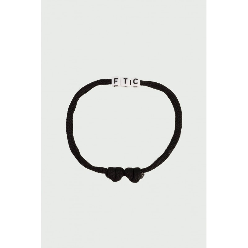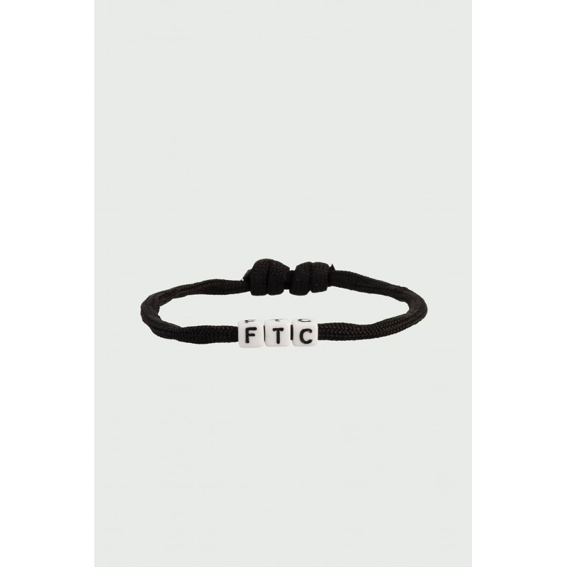 Állítható csúszócsomós paracord fekete karkötő, "FTC" feliratú akril kocka gyöngyökkel. Legkisebb átmérő: 6 cm. Legnagyobb átmérő: 10 cm. Anyaga: paracord, akril betűk Vízben nem viselhető!